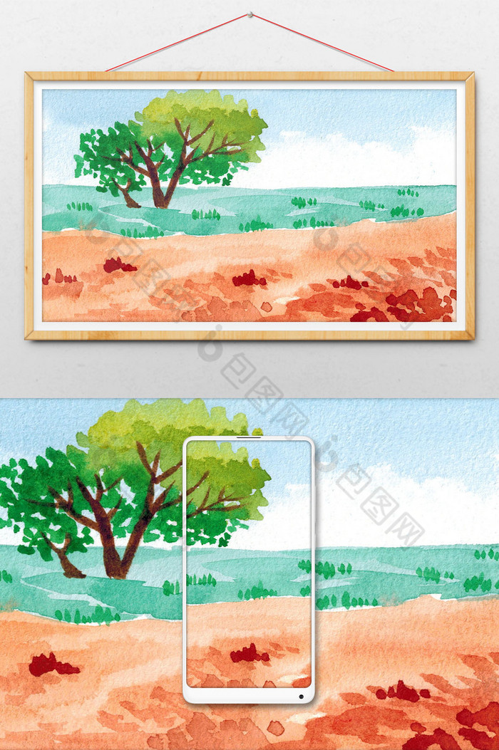 景观:水彩水彩背景背景素材景观草地场春夏季秋冬季场高原森林-图库插图[62531354] - PIXTA